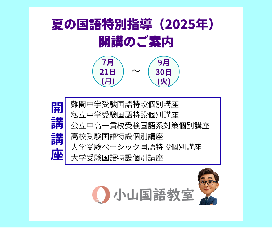 小山国語教室は、東京大学大学院修了の塾長による、完全個別指導の国語専門塾です。