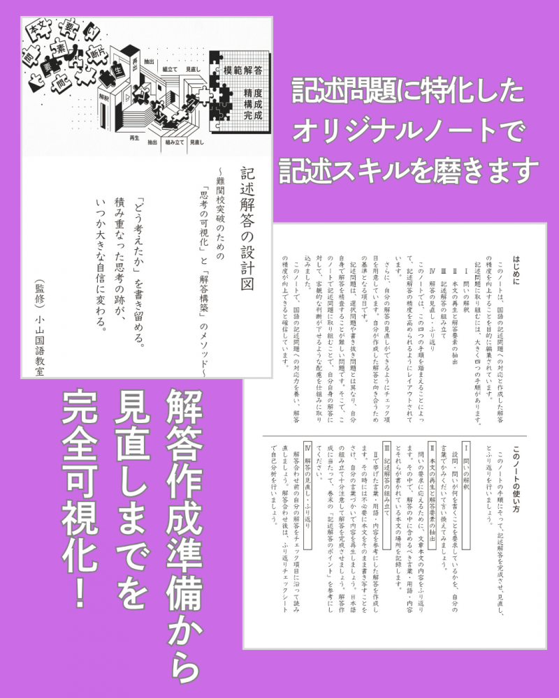 そこで、私が長年温めてきたメソッドを凝縮し、オリジナルノート**『記述解答の設計図』**を完成させました。