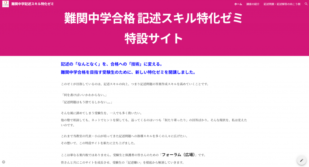 先日立ち上げました「難関中学合格 記述スキル特化ゼミ」に関する情報です。